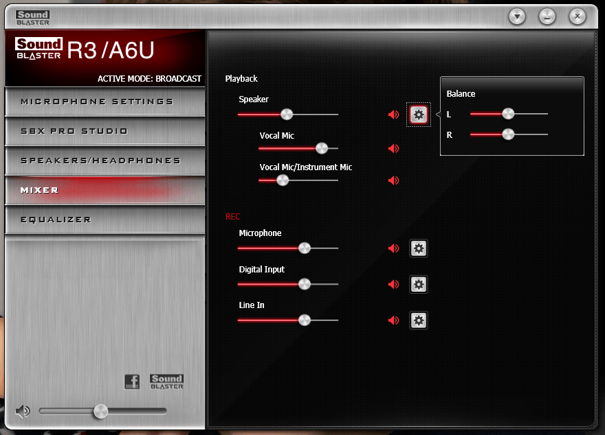 Capturi de ecran din software-ul Sound Blaster R3 Control Panel pentru Windows:
