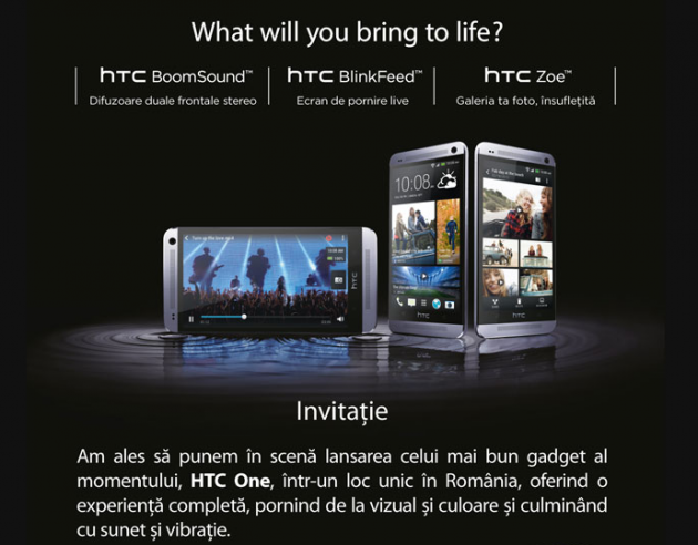 Au fost trimise invitațiile pentru evenimentul de lansare al HTC One pe plan local. Joia viitoare va sosi și în țara noastră, în mod oficial. Va fi interesant de văzut ce preț de comercializare vor alege și cât va costa în oferta operatorilor de telefonie.