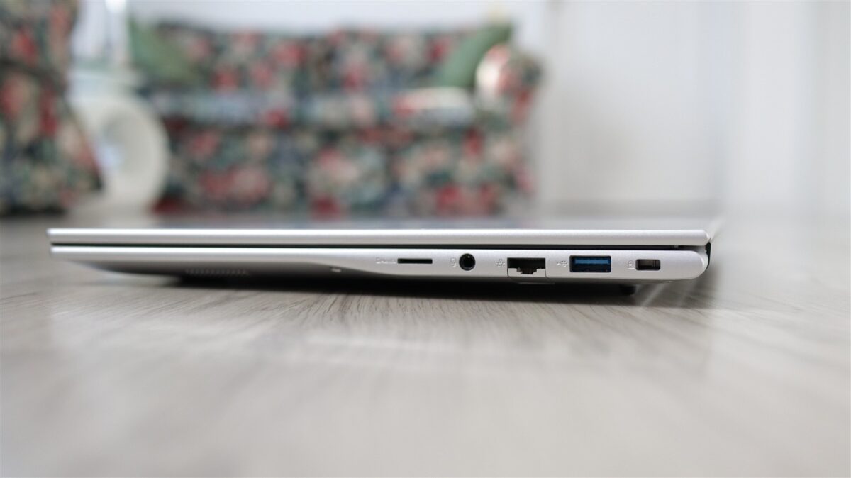 În ceea ce privește zona de conectivitate, Acer Aspire Lite 16 AL16-54P se prezintă peste așteptări. Dacă pe partea wireless nu este neapărat ceva special, având totuși Wi-Fi 6 (ax), dual-band pe 2.4 și 5 GHz, și Bluetooth 5.1, la porturile fizice laptopul stă nesperat de bine. Ep laterala din stânga avem 2 x USB-C 3.2 Gen1 (ambele suportă alimentare), 1 x USB-A 3.2 Gen1 și HDMI, pentru ca pe laterala din dreapta să apară un al doilea USB-A 3.2 Gen1, port Ethernet RJ-45, jack audio combo de 3.5 mm (ieșire sunet + intrare microfon) și un slot pentru carduri microSD.