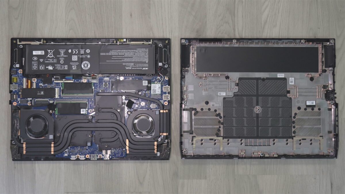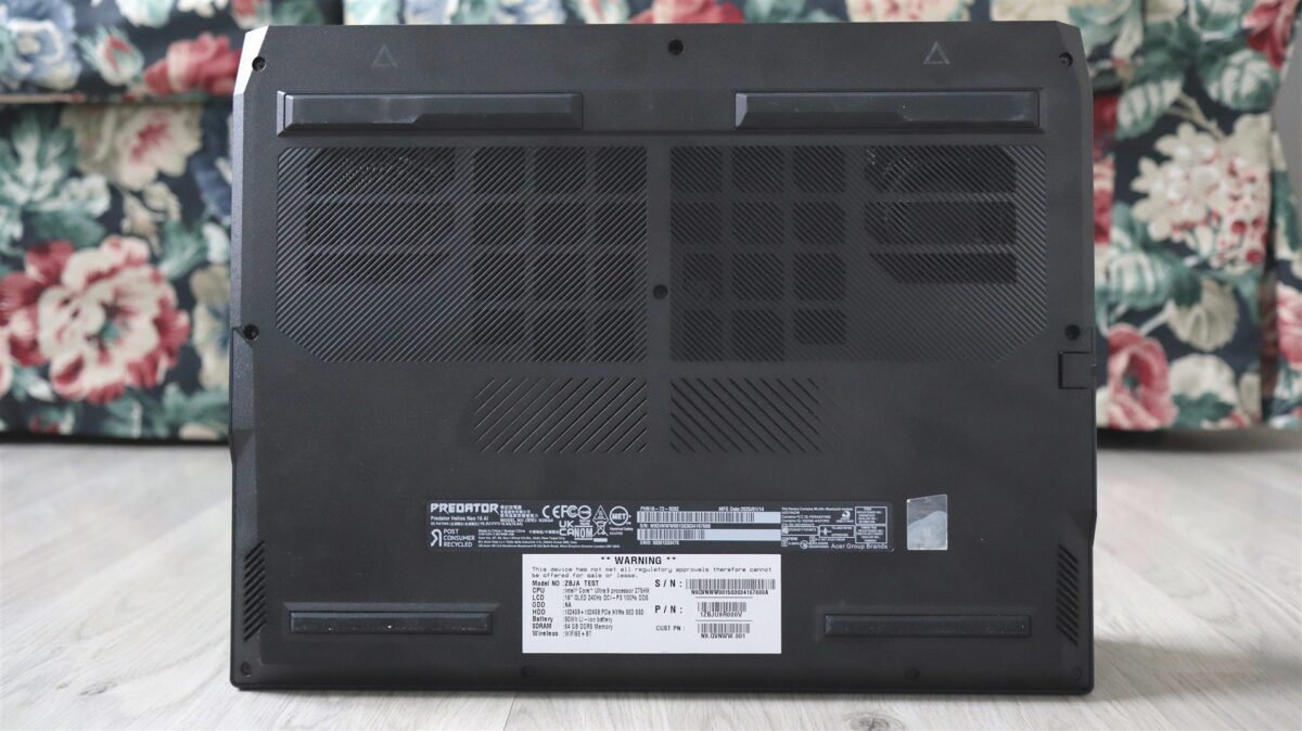 În rest, nu ar mai fi elemente cu adevărat extravagante, spatele laptopului propune multe grile de aerisire, dar și picioare din cauciuc care ridică mult dispozitivului, lăsând astfel aerul să circule mai liber.