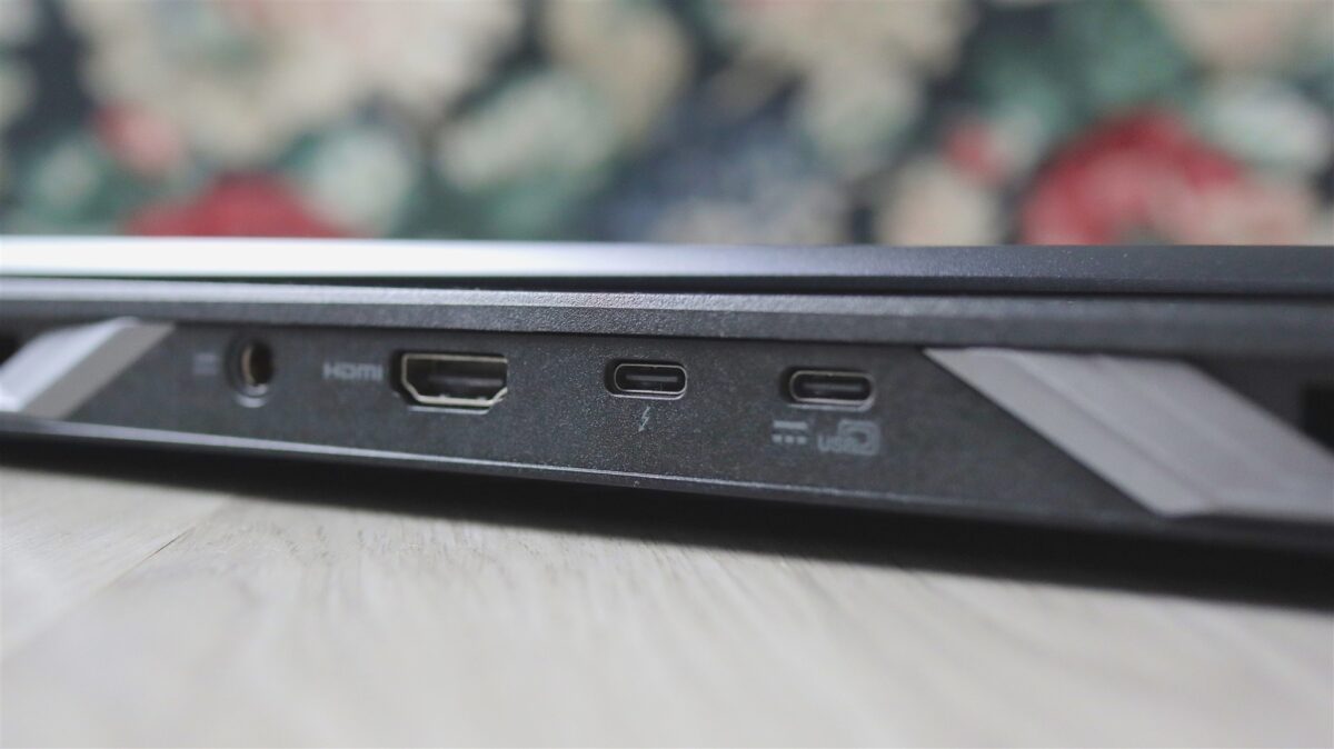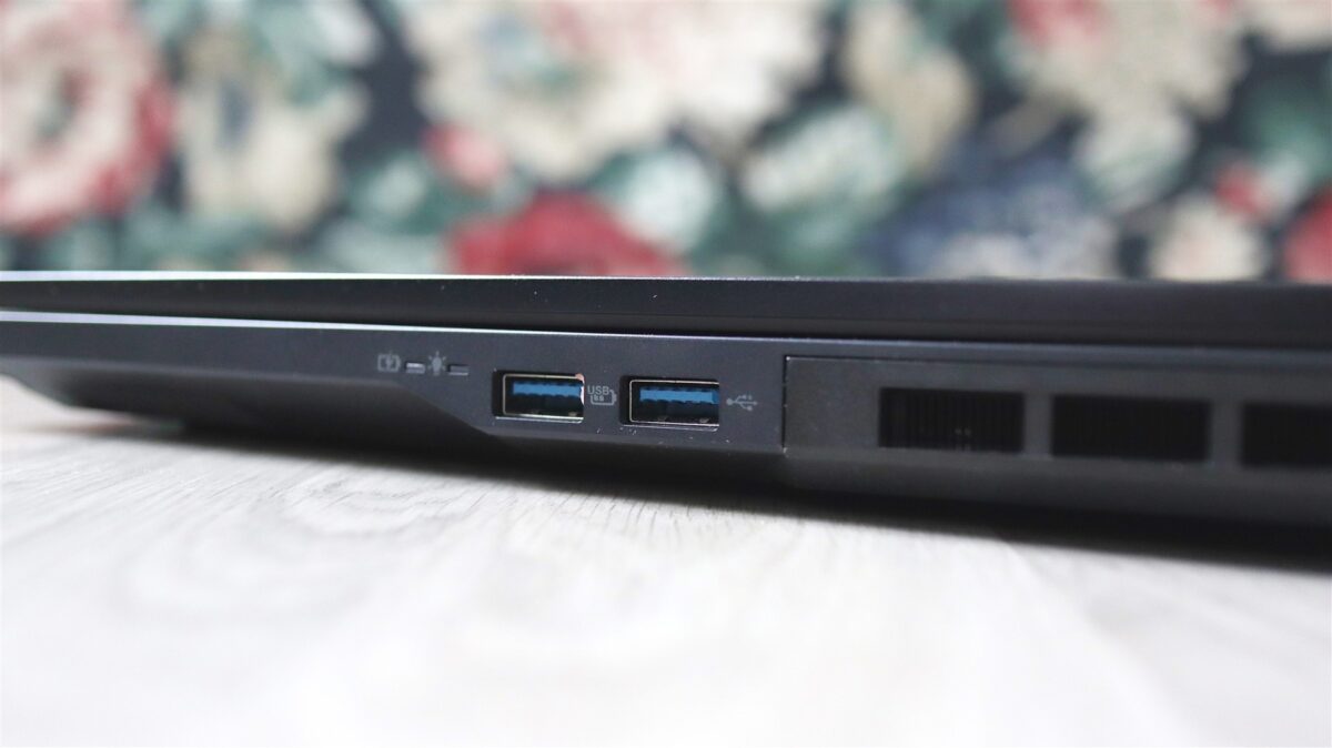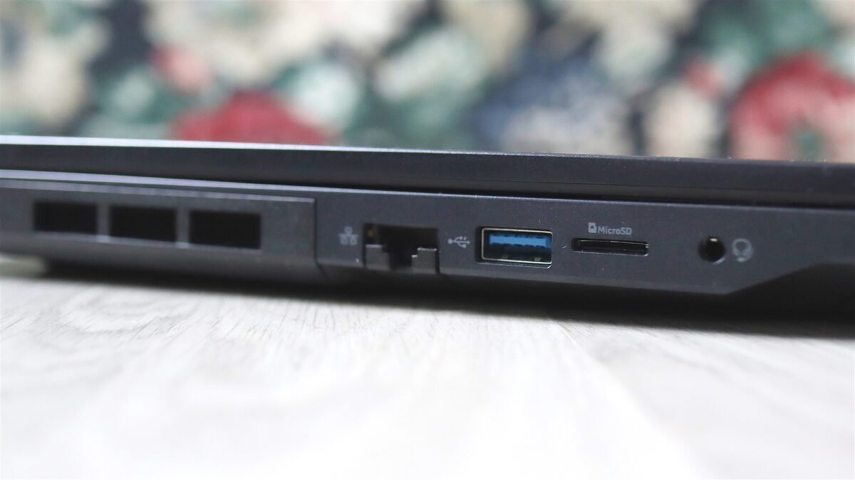 Pe zona de contact direct avem pe latura din spate portul de încărcare, 1 x HDMI 2.1 și 2 x USB-C, pe dreapta vedem 2 x USB-A, în timp ce pe stânga mai apare un USB-A, un Ethernet RJ-45, jack-ul audio combo de 3.5 mm și un microSD card reader.