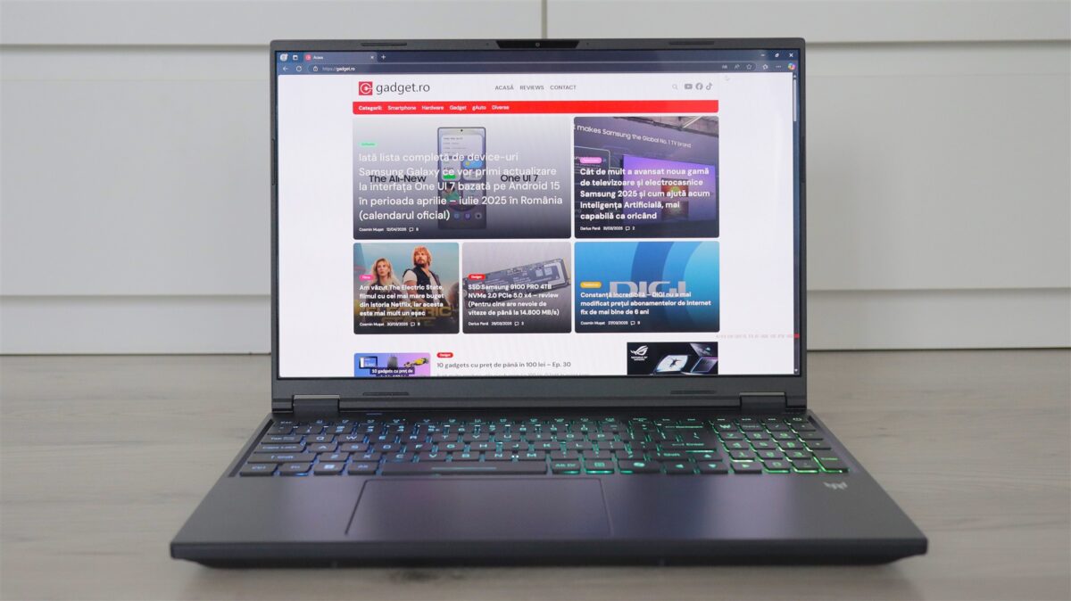 Aici avem ceva premiere. Una, și poate cea mai importantă, pe care am adăugat-o din această cauză chiar din titlu, se referă la placa video. Este prima NVIDIA GeForce RTX seria 50 din segmentul laptop cu care iau contact. Mai precis, este vorba despre NVIDIA GeForce RTX 5070 Ti, cu 12 GB de memorie RAM din cea mai nouă generație, adică GDDR7, mult mai performantă decât cea GDDR6. În fine, voi veni cu detalii extinse despre întreaga gamă NVIDIA GeForce RTX 50 Laptop într-un articol separat, am participat la un eveniment dedicat acestei serii și merită să aflați explicit despre ce este vorba.