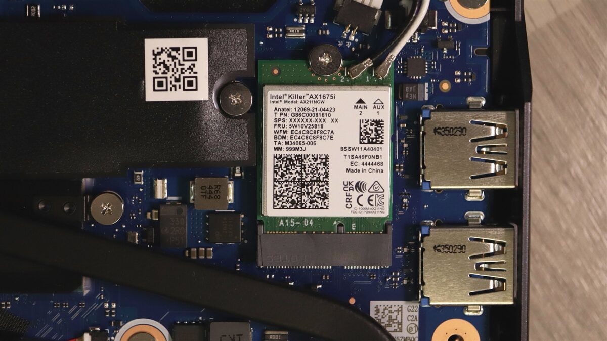 Mai nimic de reproșat aici, prezența modulului Intel Killer AX1675i asigură conectivitatea Wi-Fi 6E, cu banda pe 6GHz acolo, dar și Bluetooth 5.3, din nou bine.