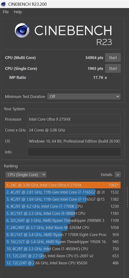 | Cinebench R23 (puncte) Multi Core Single Core | 34904 1965 |