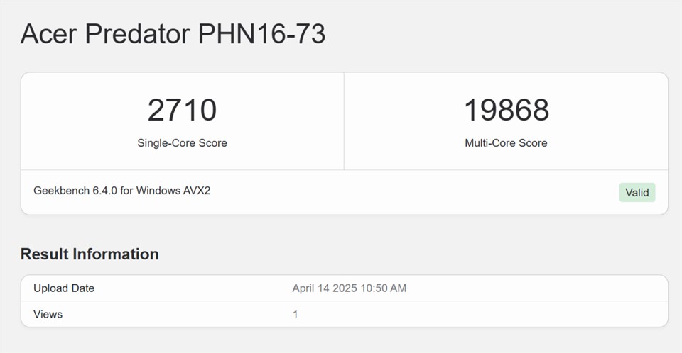 | Geekbench 6.4.0 (puncte) CPU Single-Core CPU Multi-Core | 2710 19868 |
