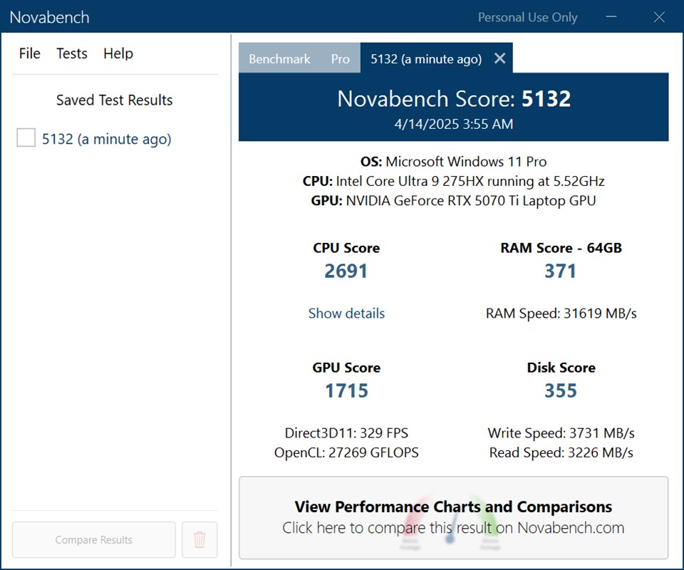 Am rulat și pe Acer Predator Helios Neo 16 AI PHN16-73 toate testele de benchmark pe care le tot utilizez spre a destăinui performanțele unui PC, iar rezultatele le puteți consulta atât în tabelul următor, cât și prin capturile de ecran de sub tabel.