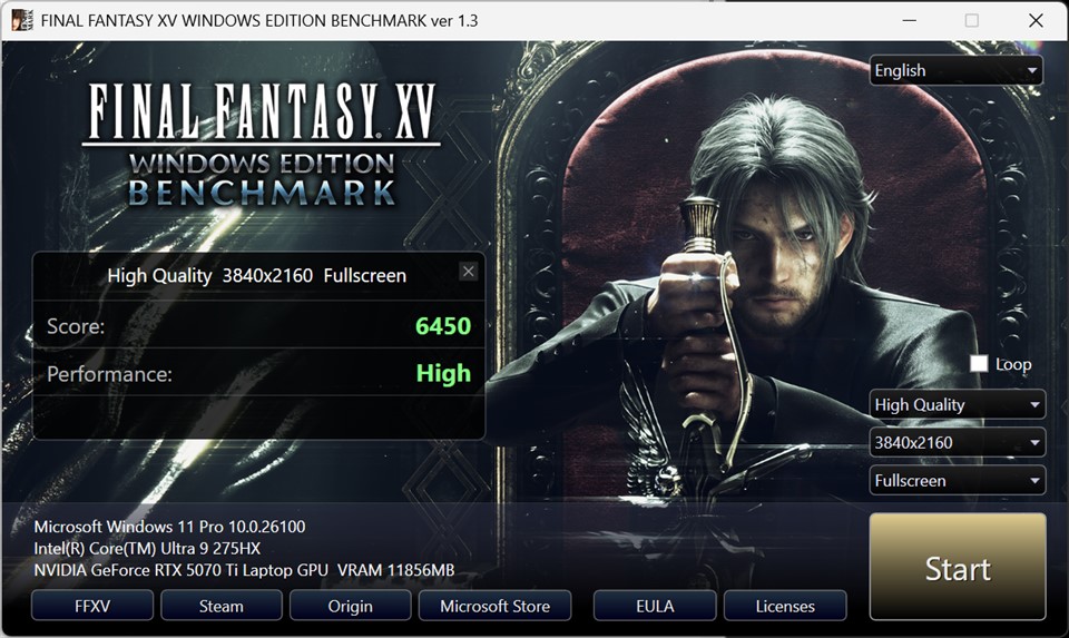 | Final Fantasy XV (puncte) 1080p High Quality 1440p High Quality 2160p High Quality | 14731 (Extremely High) 11130 (Very High) 6450 (High) |