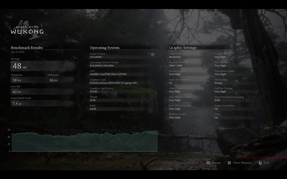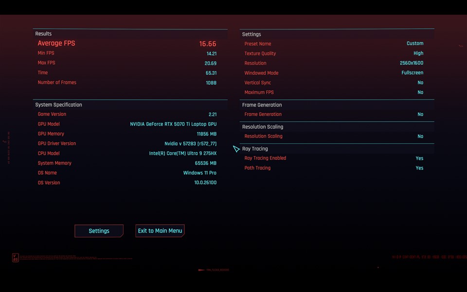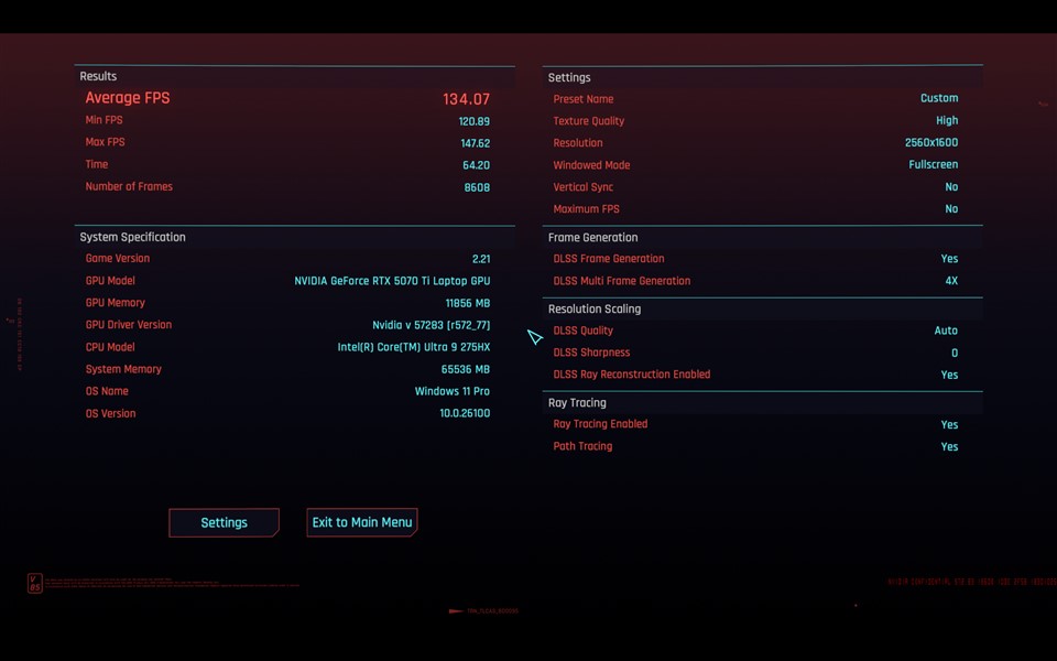 Totodată, fiindcă vorbim despre un laptop de gaming, am rulat și ceva jocuri, respectiv testele de benchmark din unele, iar toate detaliile despre FPS și calitatea aleasă sunt în imaginile următoare. Am rulat peste tot atât cu DLSS activat, cât și cu această funcție oprită, tocmai pentru a releva cât de capabilă este această tehnologie.