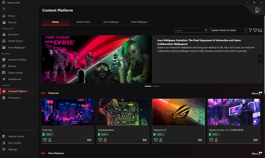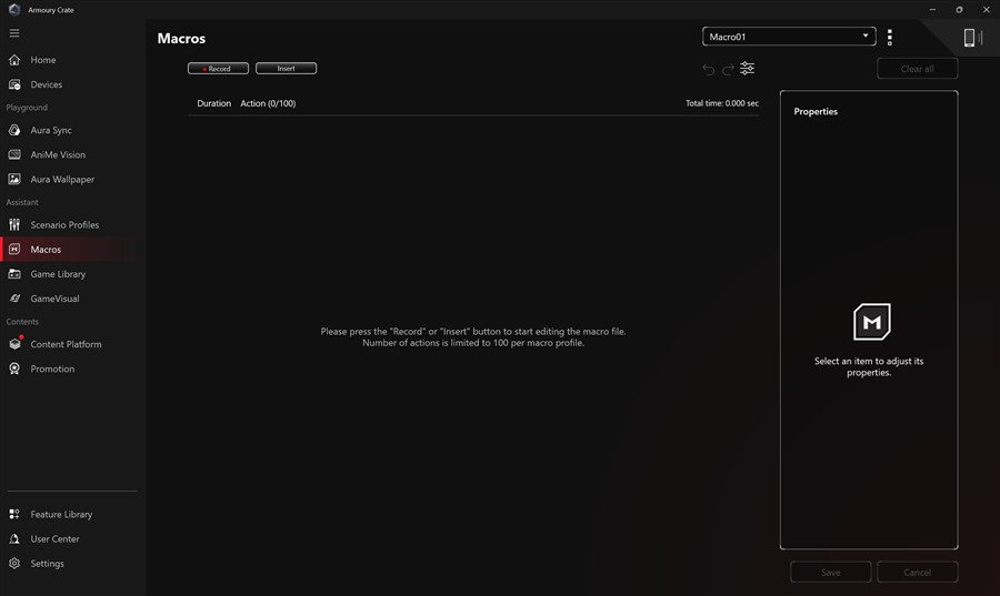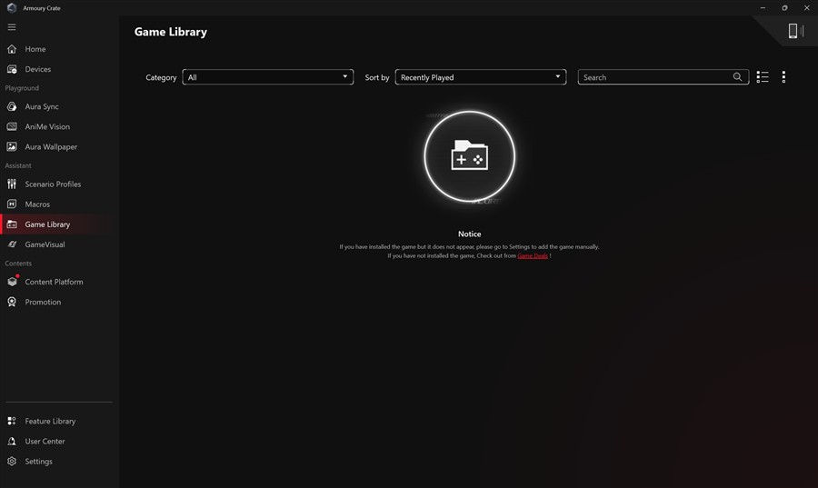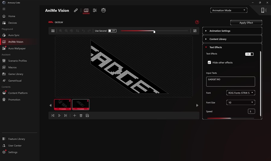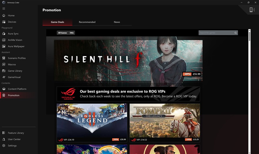 Aplicația Armoury Crate pe ASUS ROG Strix Scar 16 2025 (G635L):