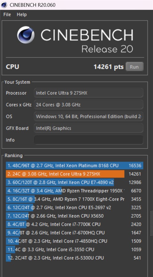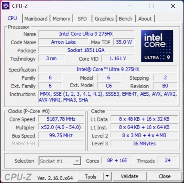 | Procesor | Intel Core Ultra 9 275HX, 24 de nuclee cu 8 Performance-cores la maxim 5.4 GHz + 16 Efficient-cores la maxim 4.6 GHz, 24 fire de execuție, 40 MB total L2 Cache, putere de bază 55W, putere maximă 160W, temperatură maximă de operare 105 grade Celsius Intel AI Boost cu 13 NPU Peak TOPS |