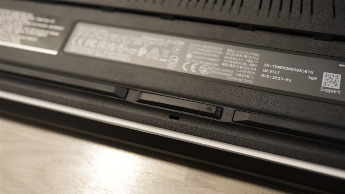 Inclusiv partea de jos a laptopului a primit o atenție deosebită, și nu mă refer aici doar la design, ci mai ales la cât de rapid poți desface capacul de plastic. Doar muți către către stânga un buton de deblocare, iar apoi glisezi în jos capacul și gata, ai acces la interior. Iar acolo, SSD-ul poate fi schimbat sau adăugat unul suplimentar în cel de-a doilea slot fără să ai nevoie de vreo unealtă (șurubelniță).