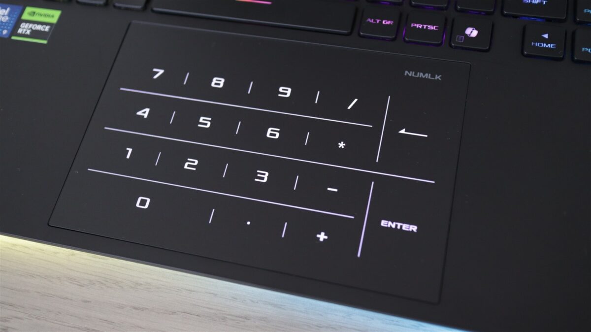 Touchpad-ul are o suprafață foarte mare, este acoperit cu sticlă și răspunde exact comenzilor de orice fel, iar integrarea unui NumPad, care se arată doar când atingi în mod prelungit pictograma specifică din colțul din dreapta sus, este binevenită.