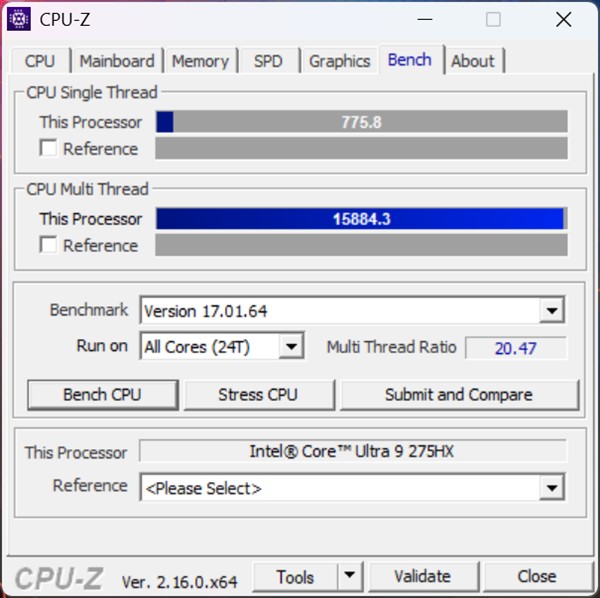 | CPU-Z v17.01.64 (puncte) Single Thread Multi Thread | 775.8 15884.3 |