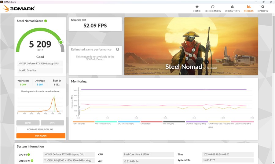 Aparte de testele de mai sus, l-am pus pe ASUS ROG Strix Scar 16 2025 (G635L) la lucru și în trei jocuri, iar cum se descurcă laptopul în Black Myth: wukong, Cyberpunk 2077 și F1 22 puteți observa din capturile de ecran de mai jos.
