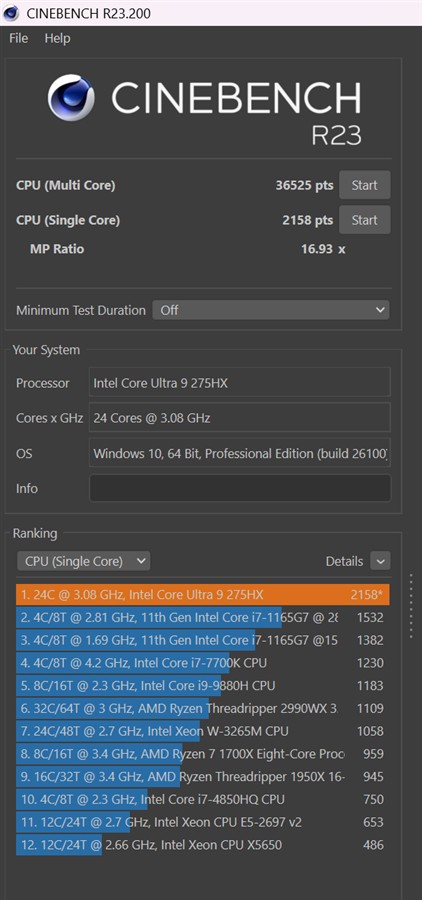 | Cinebench R23 (puncte) Multi Core Single Core | 36525 2158 |