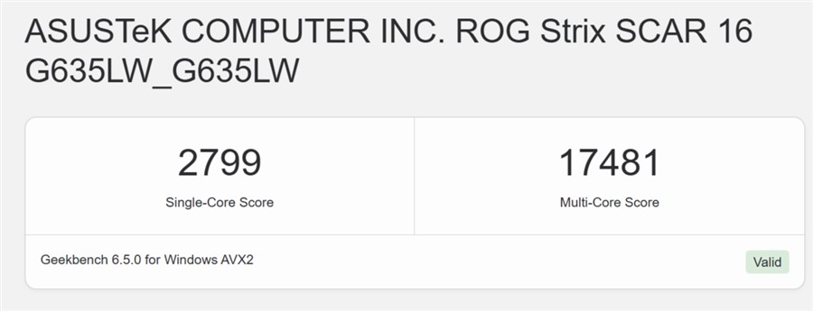 | Teste benchmark Notebook | ASUS ROG Strix Scar 16 2025 (G635L) |