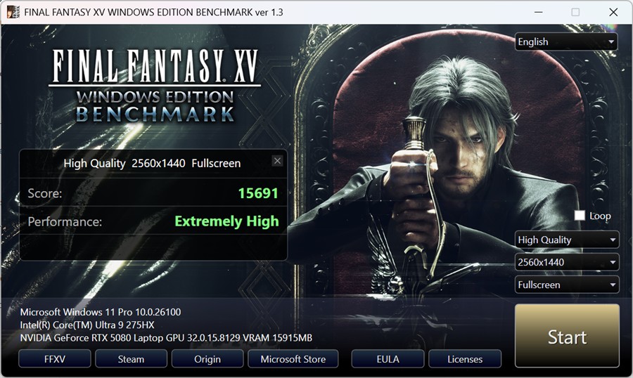| Final Fantasy XV (puncte) 1440p High Quality 2160p High Quality | 15691 (Extremely High) 9212 (Very High) |