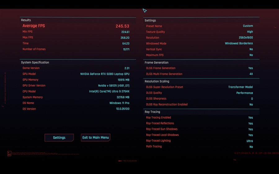 De precizat, deși puteți remarca și din imagini, că rezoluția a fost cea maximă a ecranului (2560 x 1600 pixeli), iar detaliile grafice din fiecare jos la maxim. NVIDIA DLSS a fost activ, ca și funcțiile Ray Tracing, la maxim și ele.