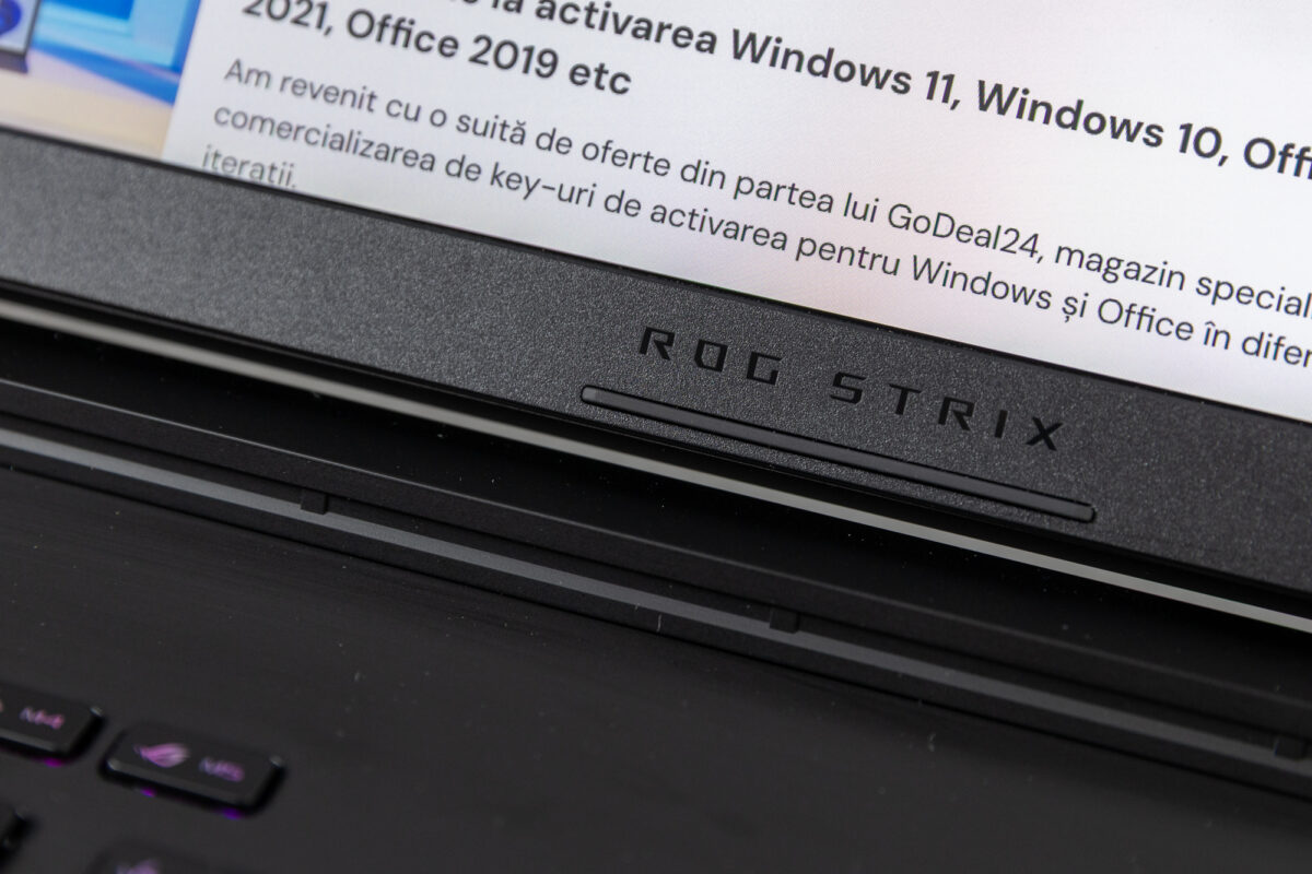 Așa cum ne dăm deja seama din denumire, avem în față un laptop cu ecran de 18 inch, deci unul mare, care se adresează celor care vor un adevărat înlocuitor de desktop PC, pe care însă să-l și poată transporta la nevoie. Este drept că nu-i cel mai portabil notebook, dar ar trebui să știi asta încă de când ai în vedere un laptop de 18 inch. ASUS ROG Strix SCAR 18 G835 este masiv, cu o grosime de 3.2 cm (în cel mai înalt punct) și cu o greutate de 3.3 kg. În același timp, însă, laptopul este extrem de solid, nimic nu scârțâie, să zic așa, totul este zdravăn, temeinic asamblat. De fapt, tot ce ține de construcție și calitate de fabricație este la cel mai înalt nivel, chiar nu aș avea de ce să mă pot lega din aceste puncte de vedere. Mi-au atras atenția în mod special balamalele serioase, să le spun, unele care par a putea îndura multe și care vor rezista bine în timp.