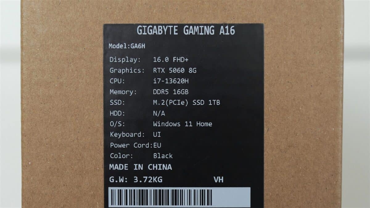 GIGABYTE Gaming A16 (GA6H)