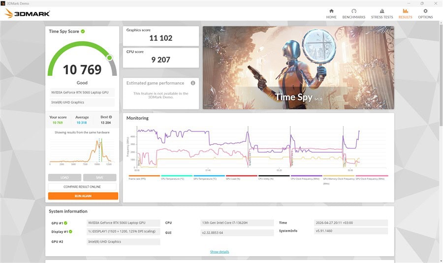Vedem că temperaturile nu au urcat exagerat nici pe CPU și nici pe placa video NVIDIA GeForce RTX 5060, semn că sistemul de răcire face față celor mai solicitante scenarii de utilizare.