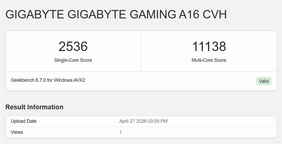 Teste de benchmark rulate pe GIGABYTE Gaming A16 (GA6H):