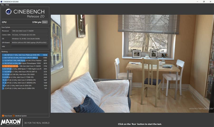 Cinebench R20 (puncte)5784
