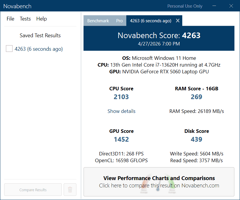 Novabench (puncte)4263