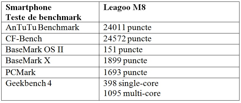 Rezultatele obţinute de Leagoo M8 le puteţi găsi mai jos: