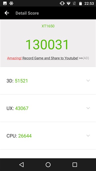 Teste de benchmark rulate pe Lenovo Moto Z;