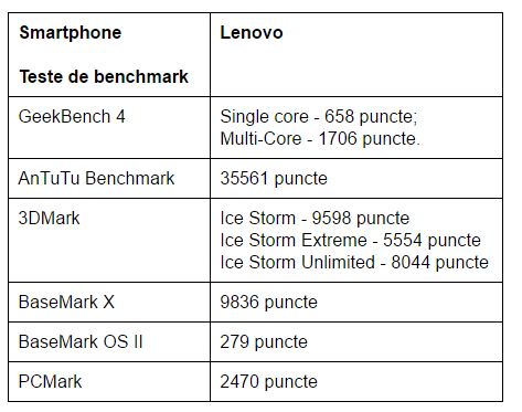 Snapdragon 616 + 2 GB RAM nu mai sunt chiar așa actuale, dar testele de benchmark sunt teste de benchmark, iar valorile obținute sunt notate în tabel.