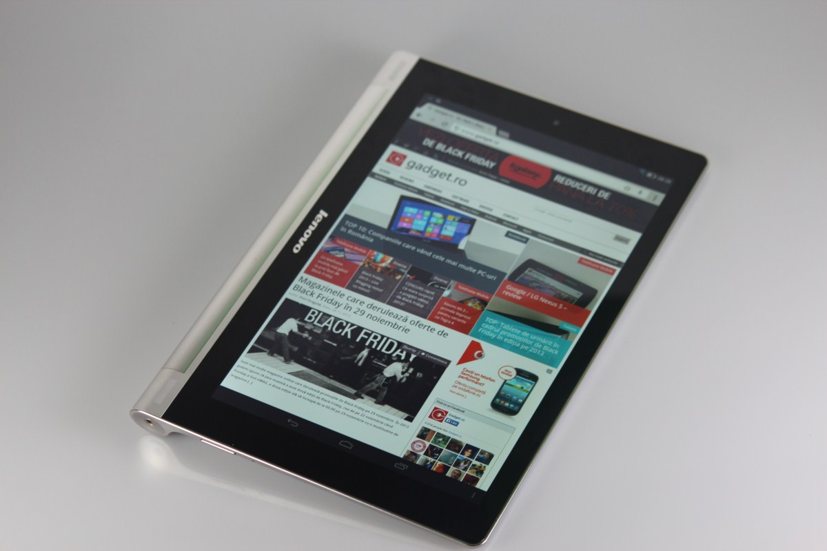 IPS de 10.1 inch de rezoluție 1280×800 pixeli și un prim punct la care Lenovo a ales să meargă pe o soluție de buget. Prima generație a tabletelor de top cu Android miza pe 1280×800 pixeli. Acum deja s-a trecut spre 1920×1200 pixeli sau 2560×1600 pixeli etc. Totuși, Lenovo Yoga Tablet 10 nu merge în categoria tabletelor de top cu preț de peste 2000 de lei. Se cantonează sub 1500 de lei. Am putea spune că este o tabletă mid-range și de aici unele compromisuri inerente.