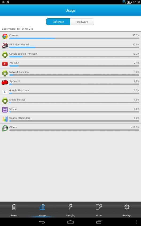 Procesor MediaTek quad-core pe ARM Cortex-A7 care teoretic consumă mai puțin, display cu rezoluție 1280×800 pixeli și baterie de 9000 mAh. De aici rezultă autonomie pe măsură. Foloseam tableta pe luminozitate maximă, sincronizare în fundal și mă uitam la procente să văd când vor începe să coboare. Rezistă ore întregi. Este o tabletă pe care o iei cu tine într-un zbor cu avionul ce durează ore întregi și s-ar putea să nu o epuizezi până la aterizare. =