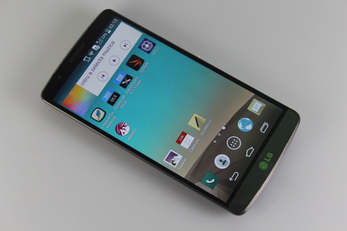 Pot să spun că LG G3 are cel mai bun display din telefoanele testate în 2014. Nu aș pune preț pe rezoluția de 2560×1440 pixeli ci pe culorile excelent redate, luminozitate ridicată, unghi de vizualizare de-a dreptul larg, nu reflectă spațiul ambiant. Display-ul a fost protejat cu Corning Gorilla Glass și deși nu am găsit informații, cred că a prins și un tratament olefobic, amprentele se adună mai greu.