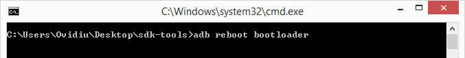 5. În fereastra deschisă la punctul 3 tastează și execută comanda adb reboot bootloader . Aceasta va porni telefonul în modul bootloader.