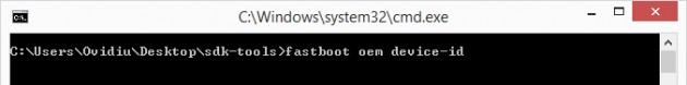 6. Acum va trebui să găsim Device ID. Pentru acest lucru, în aceeași fereastră va trebui să execuți comanda fastboot oem device-id .
