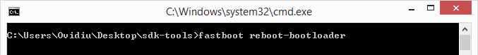12. Repornește telefonul în modul bootloader pentru ca modificările să poată fi aplicate. Pentru acest lucru va trebui să execuți comanda fastboot reboot-bootloader .