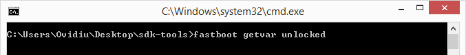 13. Confirmă deblocarea bootloaderului executând comanda fastboot getvar unlocked care va trebui să îți returneze răspunsul unlocked: yes.