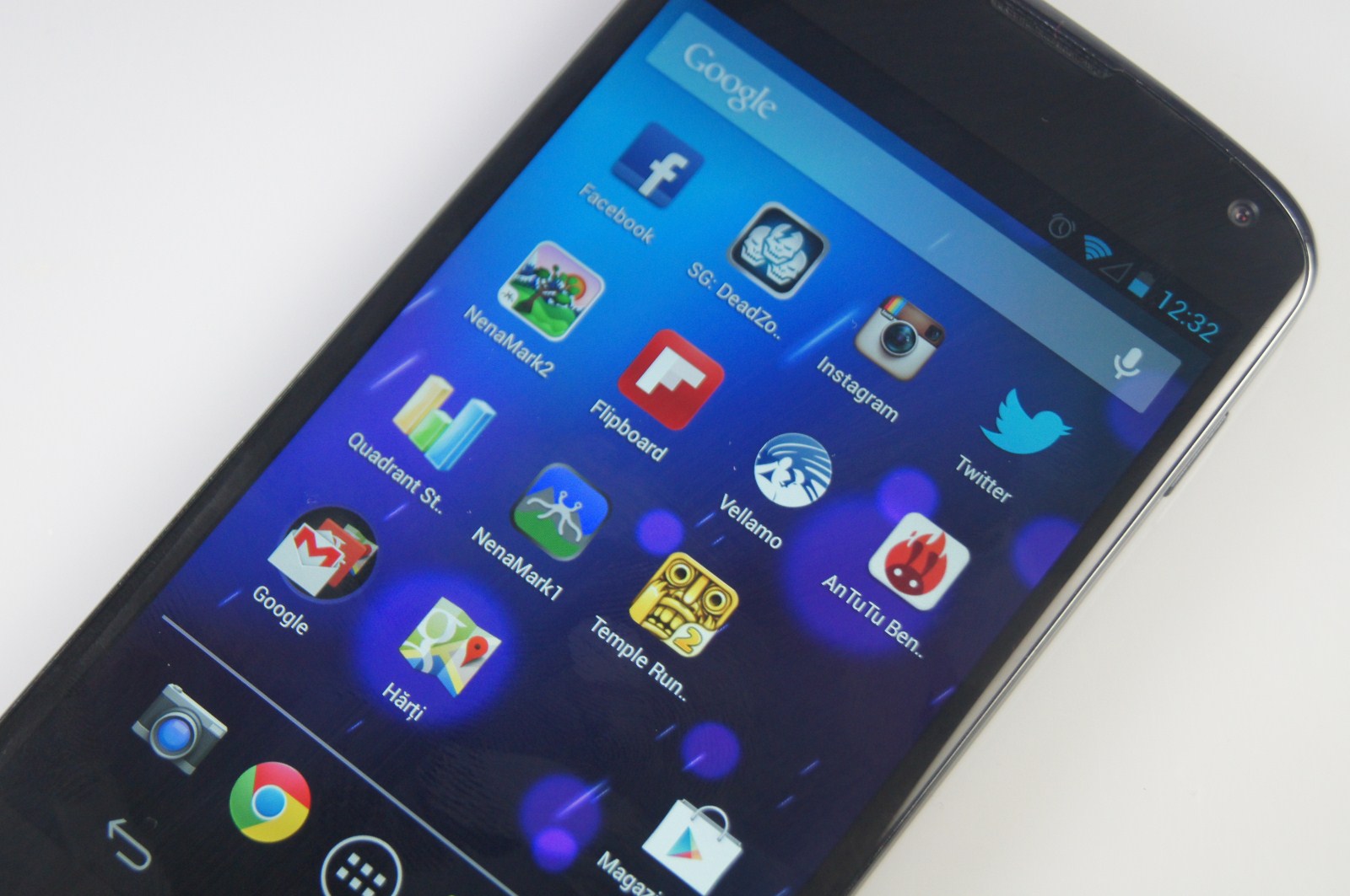 Android 4.2.1 Jelly Bean nu se deosebește prea tare de 4.1 Jelly Bean. De remarcat ar fi zona de notificări care aduce un upgrade mai mare. Printr-un gest swipe vezi zona de notificări și mai este nevoie de un gest touch spre a avea acces la Luminozitate, Setări, Wi-Fi, Apeluri Pierdute, starea bateriei, Mod Avion, Bluetooth și ceas. Ca să activezi opțiunile pentru un dezvoltator de aplicații pe LG Nexus 4 trebuie să apăsați de vreo 3 sau 4 ori pe numărul versiunii JO440D după ce ați intra în meniul Despre telefon. Capturile de ecran / Screenshots se fac prin apăsarea concomitentă a butonului de power și cel pentru reglarea volumului în jos. Am făcut mai multe capturi de ecran ca să vedeți în detaliu ce aduce 4.2 Jelly Bean.
