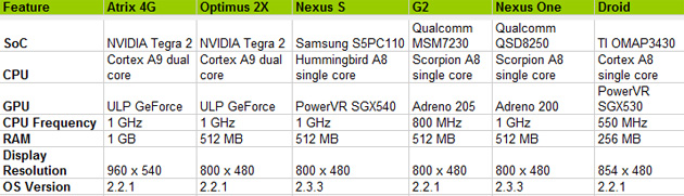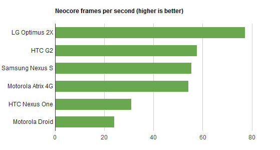 Se pare că există diferenţe serioase între telefoanele dezvoltate pe platforma Nvidia Tegra 2 ce permite existenţa unui procesor dual-core tactat la 1 Ghz. Mai jos veţi observa un test de benchmark extins în care ajung a se confrunta Optimus 2x şi Motorola Atrix. Legat de Optimus 2x în Europa se va numi LG Optimus Speed şi bănuiesc că va fi primul smartphone dual-core din România. LG s-a mişcat întotdeauna mai repede.