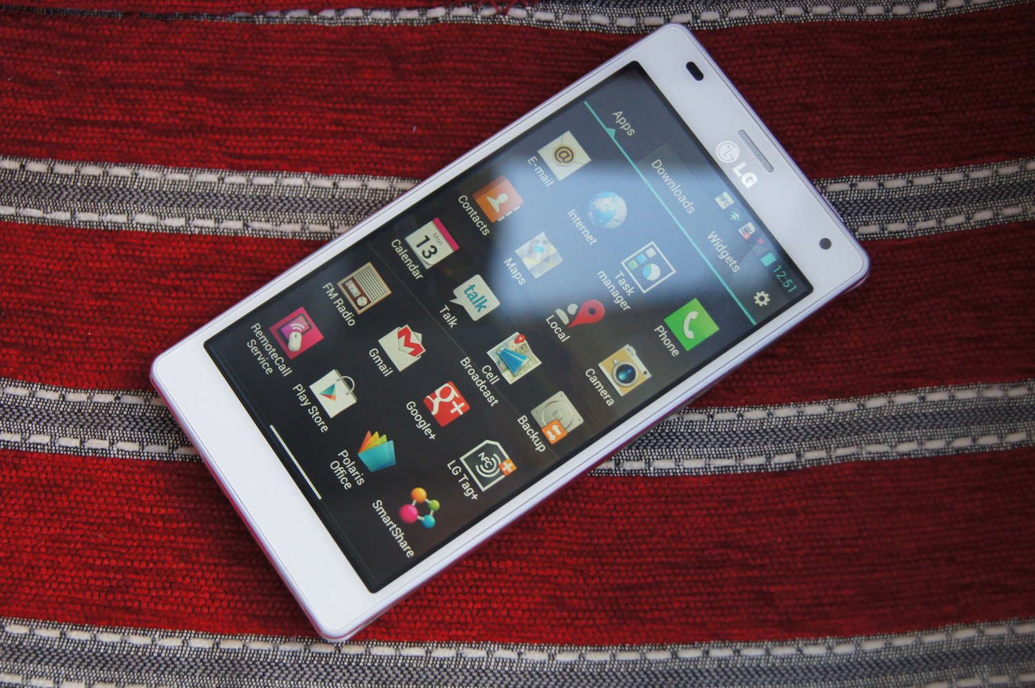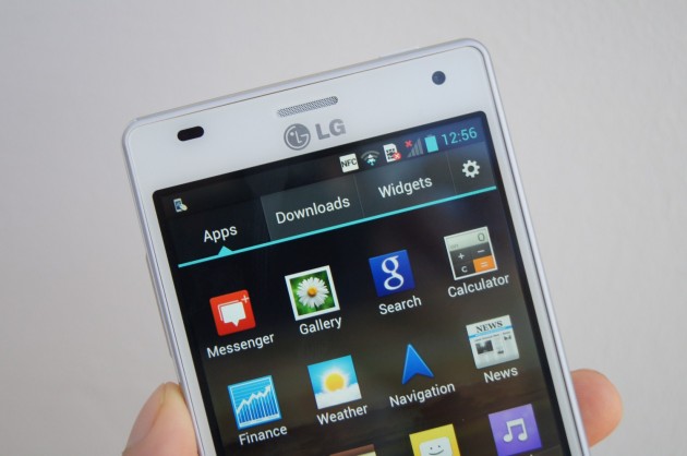 Integrează un display True-HD IPS de 4.7 inch cu rezoluție 1280×720 pixeli, 312 pixeli-per-inch și protejat cu sticlă Corning Gorilla Glass. Se vede excelent, uimește prin luminozitate, prin culorile afișate în mod natural și nu saturate ca la un Super AMOLED. Pe multe site-uri / bloguri de tehnologie a fost catalogat drept cel mai bun display la ora actuală, o matrice RGB care place de la prima vedere. Normal că l-am utilizat cu luminozitate la maxim. Nu m-a uimit în ce privește luminozitate în bătaia directă a razelor Soarelui. Mă așteptam la mai mult, efectul de oglindă deranjează și destul de greu găsești o poziție ca să vizualizezi conținutul. Până și Galaxy Nexus îl depășește la acest capitol. Contează și meniul, culorile pe care le afișează, Nexus are negru ca fundal prin meniu, iar la LG imaginea de fundal se păstrează și când intri în meniu.