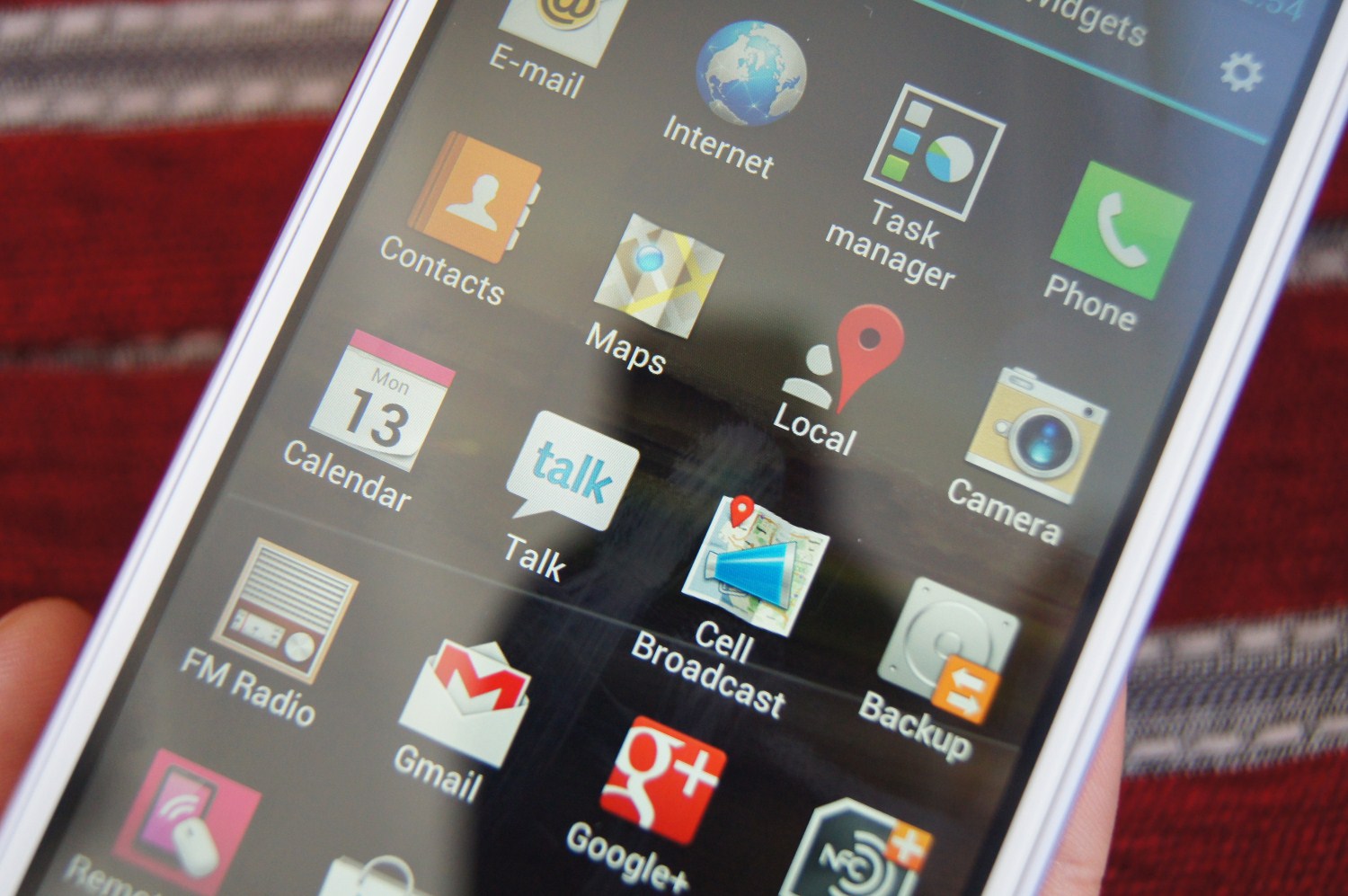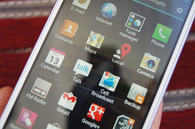 Aplicațiile sunt dispuse pe 5 rânduri și 4 coloane. În partea superioară sunt grupate în: Apps, Downloads, Widgets și o iconiță de setări. Navigarea printre aplicații se face printr-un fel de swipe natural.
