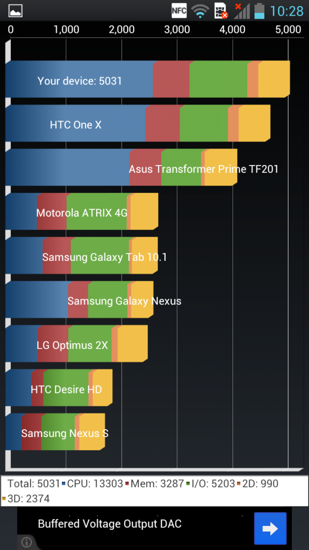 Am făcut o serie de teste de benchmark și rezultatele le găsiți mai jos. LG Optimus 4X HD se situează în imediata apropiere a lui HTC One X, pe care uneori îl și depășește. Certific că 4X HD este rapid, în browsing uimește de-a dreptul.