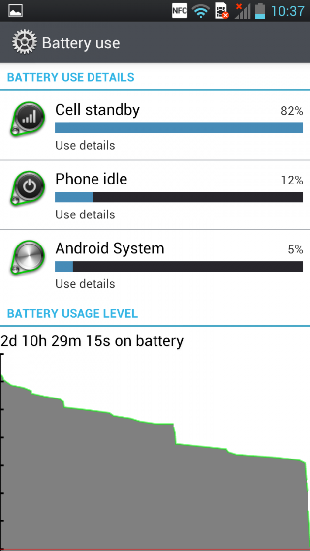 Bateria de 2150 mAh ar trebui să ofere o autonomie decentă sau chiar bună. Rezistă mai bine decât HTC One X cu 1750 mAh, dar mă așteptam la mai mult de atât. Trece testul unei zile în condițiile în care-i utilizat intensiv. Se încălzește în spate, asta înseamnă că bateria se consumă mai rapid. Se oferă acces la acumulator, capacul din spate poate fi înlăturat. Încărcătorul telefonului este micuț și se folosește de cablul microUSB – UBS 2.0 spre a face încărcarea smartphone-ului sud-coreean.