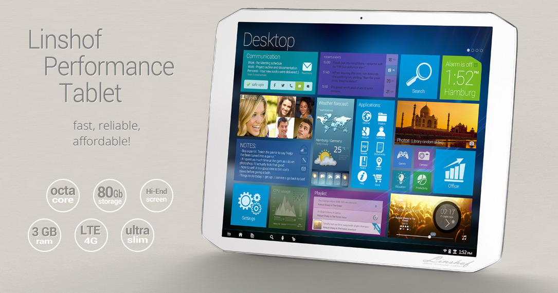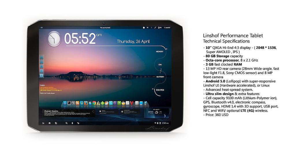 Preţul pentru Linshof Performance Tablet va porni de la 360 de dolari (versiunea doar cu Wi-Fi) şi va fi disponibilă în alb şi negru.
