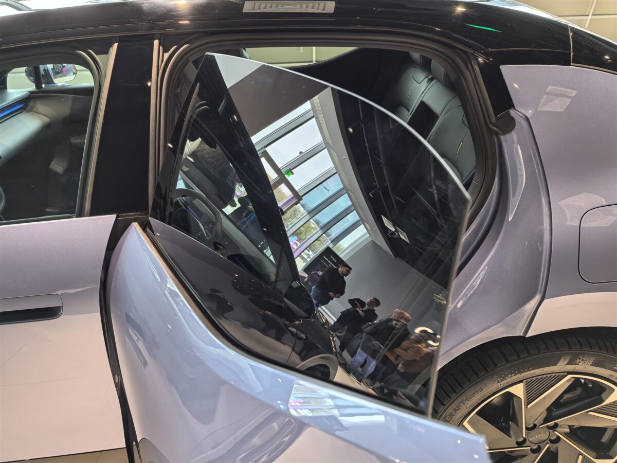 Nu există rame pentru geamurile portierelor, iar oglinzile exterioarea sunt unice, cel puțin eu nu am mai văzut așa ceva la alte mașini. Mă refer la faptul că sticla propriu-zisă este parte din carcasă, iar asta înseamnă că reglajul oglinzilor exterioare se face cu toată carcasa și nu doar sticla este mișcată în interior. Practic, întreaga carcasă a oglinzilor exterioare poate fi mutată pe toate direcțiile și astfel sticla oglinzii este mereu la aceeași poziție în carcasă.