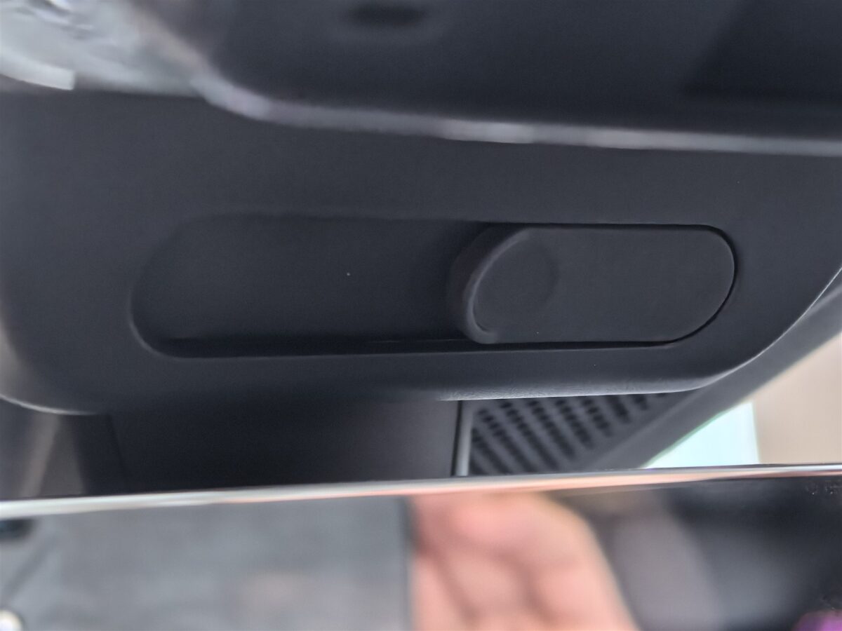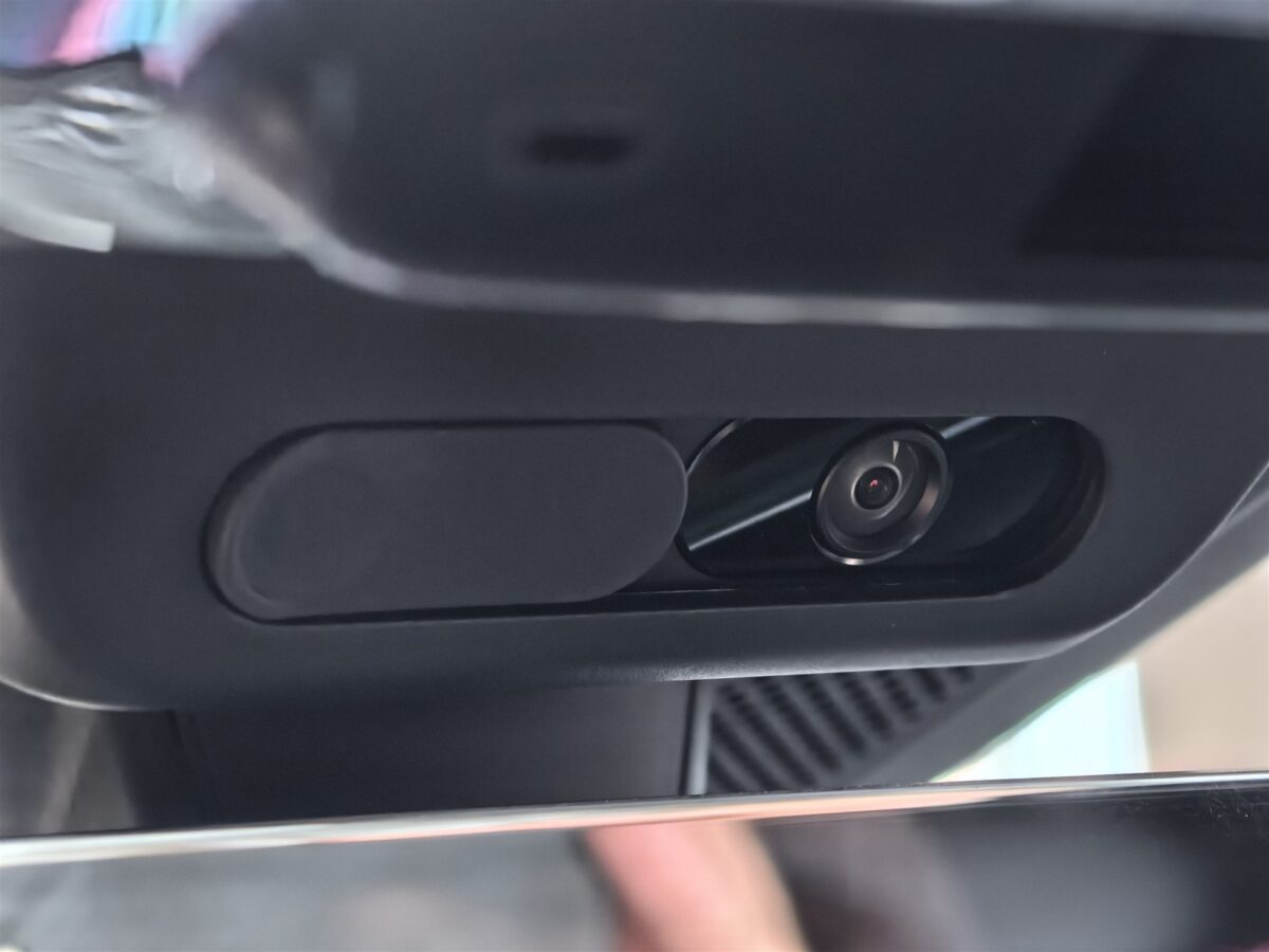 - Există o cameră video deasupra oglinzii centrale care poate capta video continuu (în buclă) și care poate face și selfie-uri. Are și obturator fizic, deci partea de intimitate este asigurată în cel mai sigur mod;