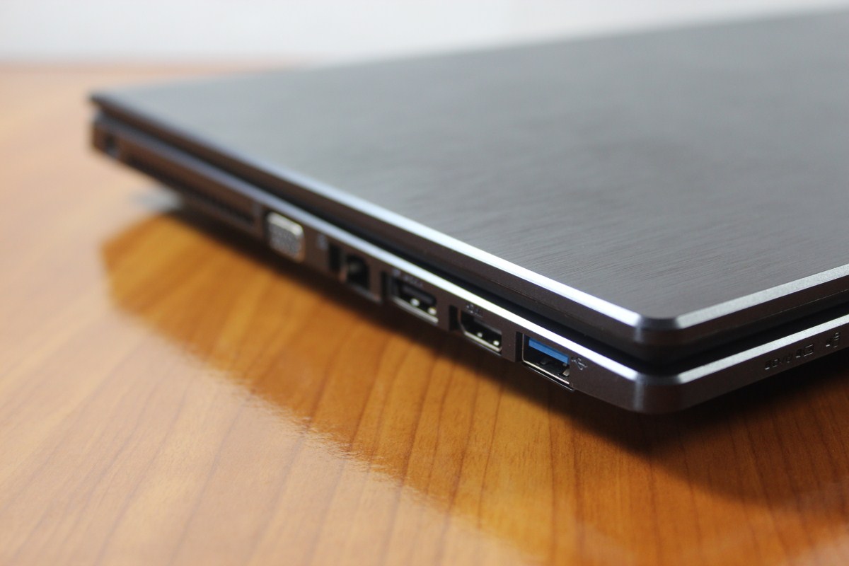 Are tot felul de elemente de conectivitate, iar dispunerea lor este următoare. În lateral dreapta dați de DVD-RW, port USB 3.0, port USB 2.0, jack de 3.5 mm pentru sunet și pentru microfon. În lateral stânga regăsiți jack-ul dedicat pentru încărcarea bateriei cu șase celule, zona prin care se face răcirea laptopului, VGA, RJ-45 cu suport pentru transferul de date cu viteze de 10 / 100 / 1000 Mbps, HDMI și 1 x USB 3.0, 1 x USB 2.0.