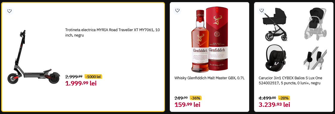 - whisky Glenfiddich Malt Master GBX de 0.7 litri – 159.99 lei (reducere de 36%);