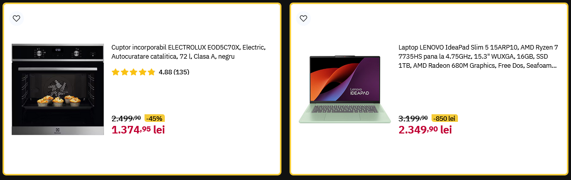 - laptop Lenovo IdeaPad Slim 5 15ARP10 – 2349.90 lei (reducere de 850 lei);